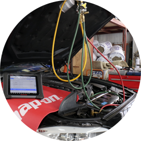 GARAGE HOLIDAY(ガレージホリデー)ではカーエアコン修理専門の設備が充実しています。各機能の作動チェックを行ったり、ガス漏れの確認、水圧テストなど徹底した故障探求を行います。